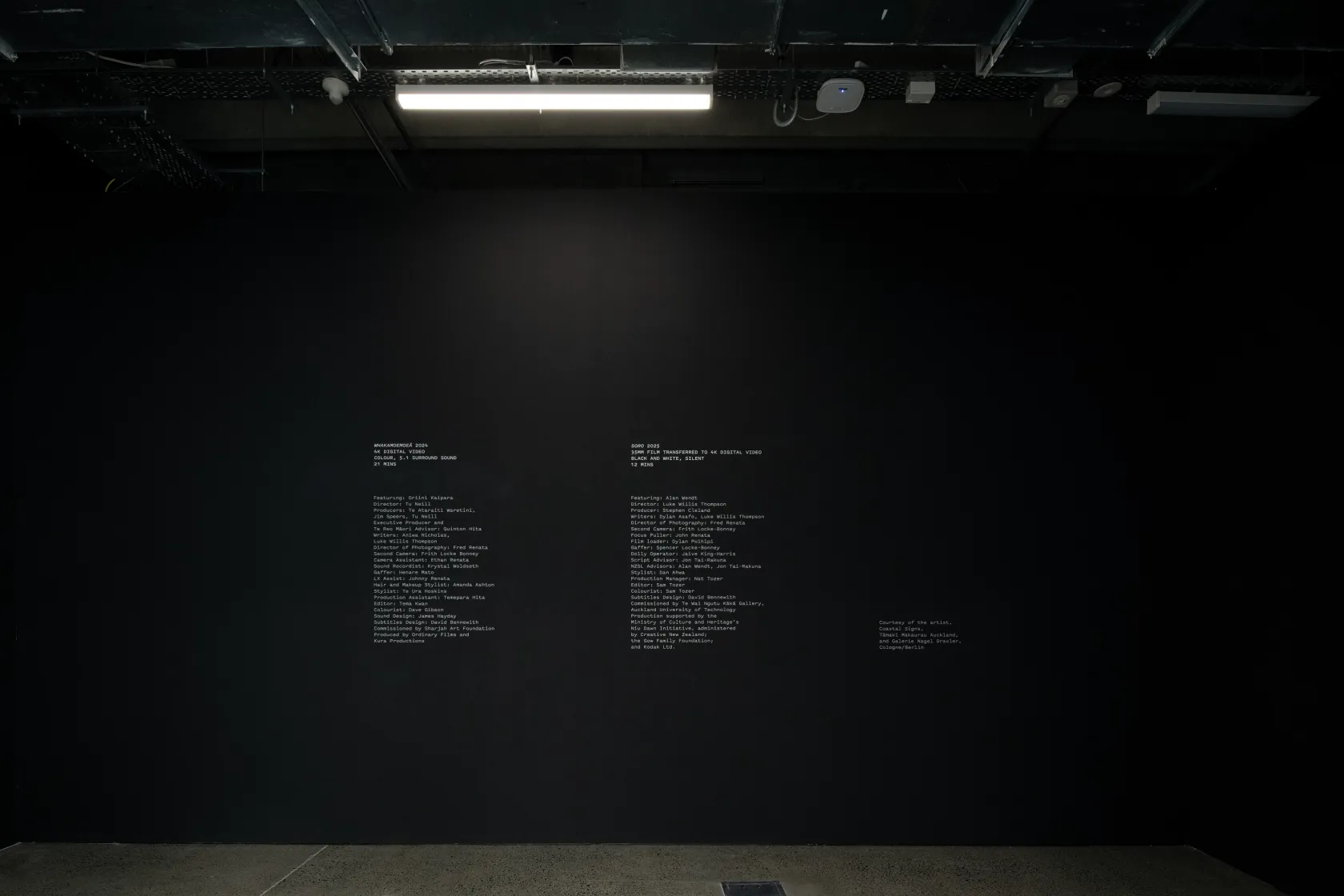 Whakamoemoeā was commissioned by the Sharjah Art Foundation and produced by Ordinary Films and Kura Productions. Soro was commissioned by Te Wai Ngutu Kākā Gallery and received generous support from the Ministry of Culture and Heritage’s Niu Dawn Initiative, administered by Creative New Zealand, as well as the Gow Family Foundation, and Kodak Ltd. Courtesy of the artist, Coastal Signs, Tāmaki Makaurau Auckland, and Galerie Nagel Draxler, Cologne/Berlin.
