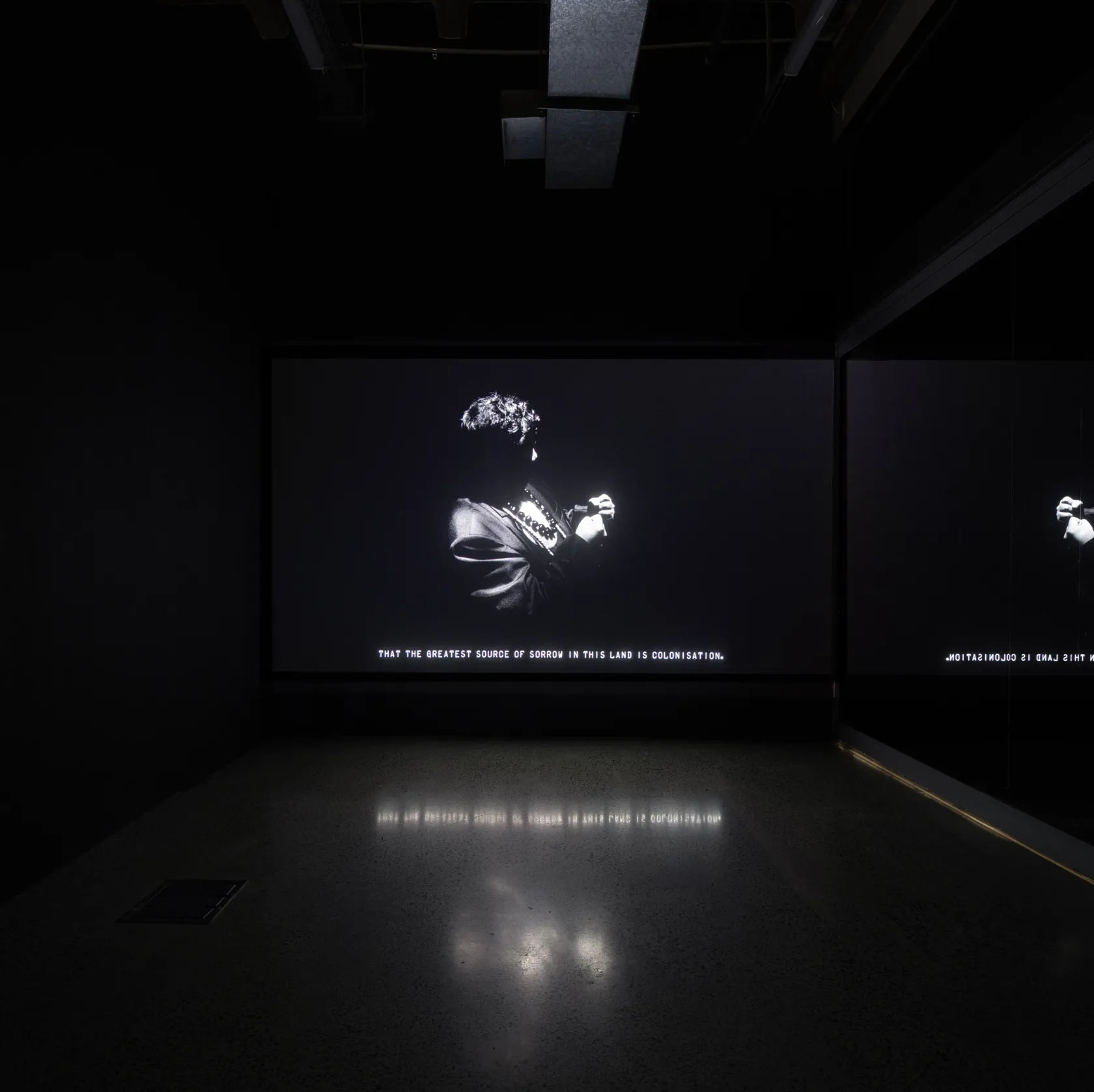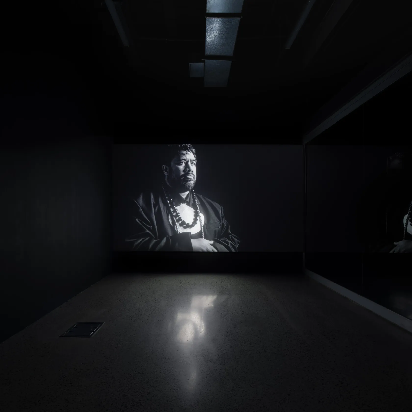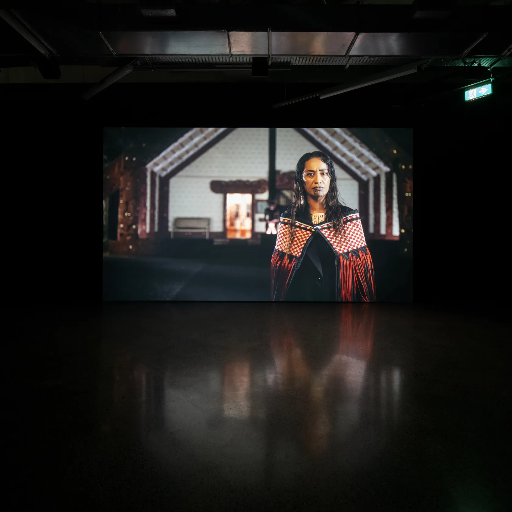 The exhibition includes the first Aotearoa presentation of Whakamoemoeā (2024), first exhibited at Sharjah Biennial 16. Whakamoemoeā figures recognised broadcaster, journalist, and politician, Oriini Kaipara, who delivers a powerful address in te reo Māori on the Waitangi grounds. Set in 2040, Whakamoemoeā imagines a constitutional transformation of Aotearoa, which transitions from a colonial Westminster-style governance to an Indigenous plurinational state, fulfilling the visionary aspirations of the 2016 report Matike Mai Aotearoa, originally championed by the late lawyer and intellectual Moana Jackson.